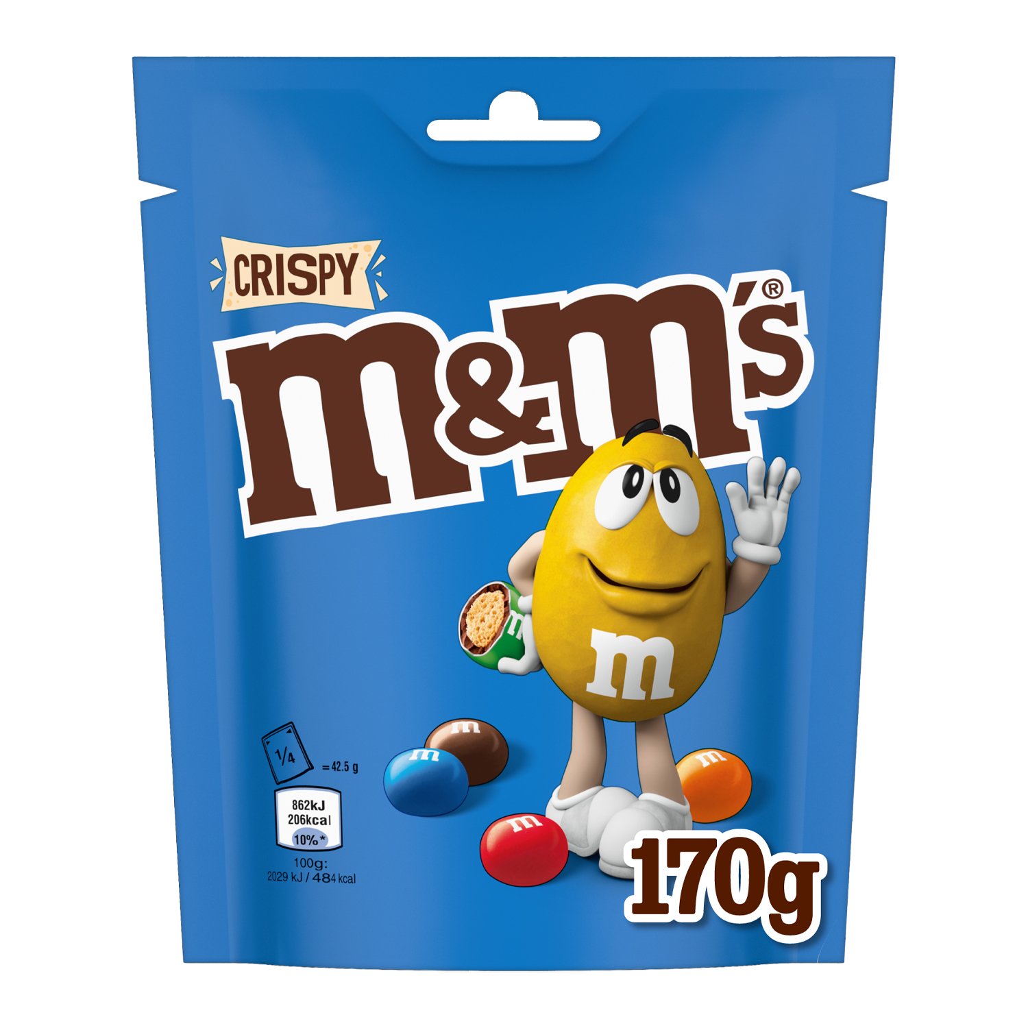• DELICIOUSLY CRISPY: m&m?s offers you a pouch of candied chocolate with delicious stuffing. Indulge in Crispy m&m?s with rice crispies surrounded by milk chocolate and a colorful shell, for a delightful taste experience.